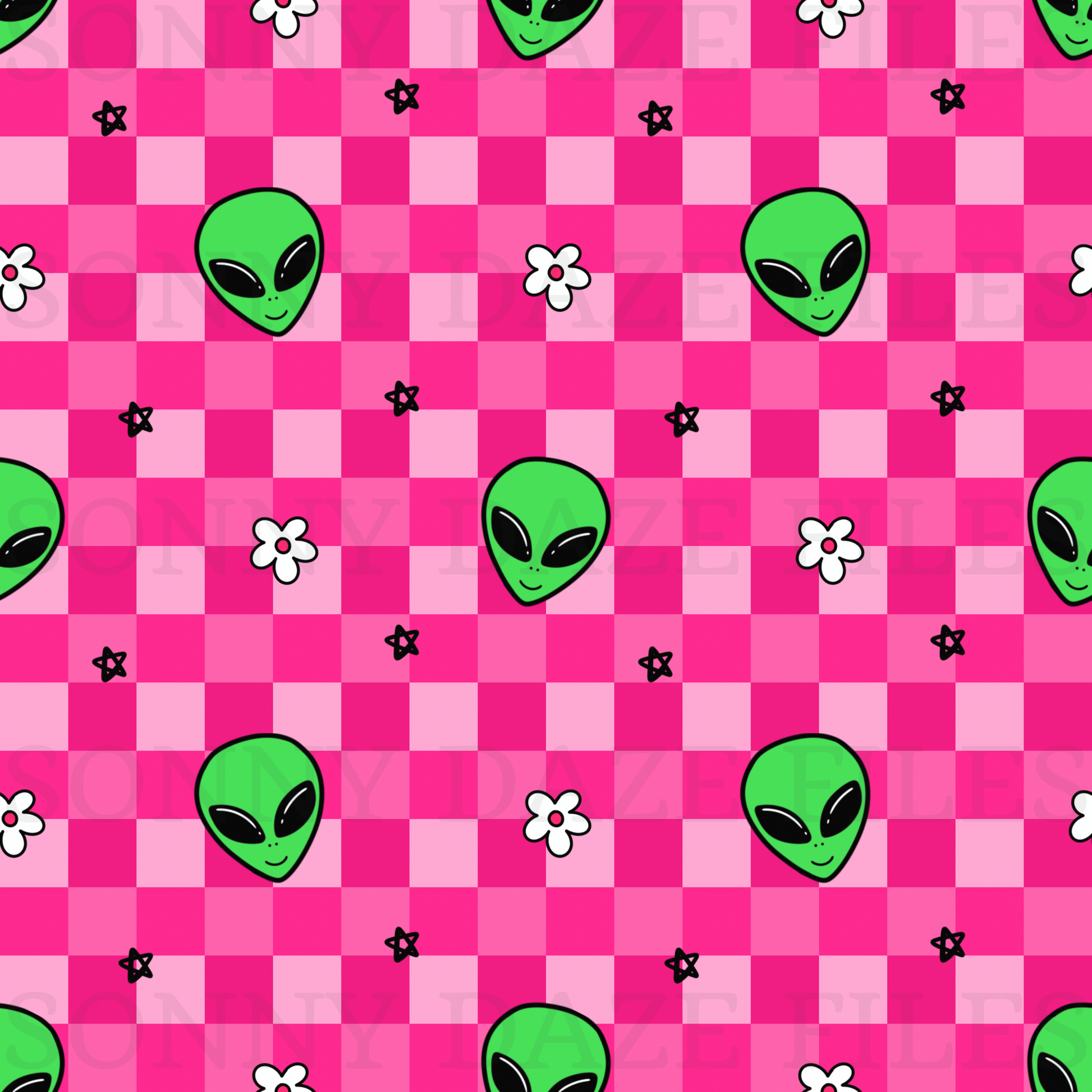Aliens on pink checkered